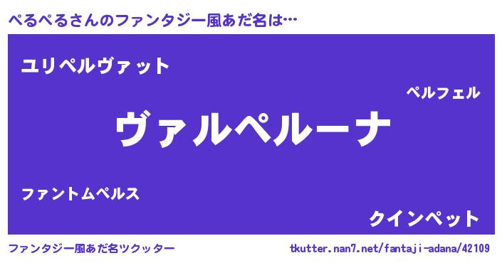 | 男性向けラノベタイトル風あだ名 | 『魔弾の王とぺるぺる』『ぺるぺるの憂鬱』 |
