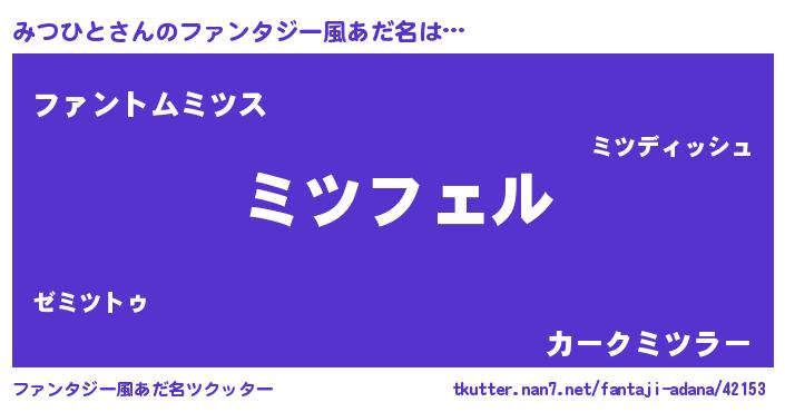 | ヒーロー風カッコイイあだ名 | 『スーパーミツヒト』『天弓騎士ミツ』 |