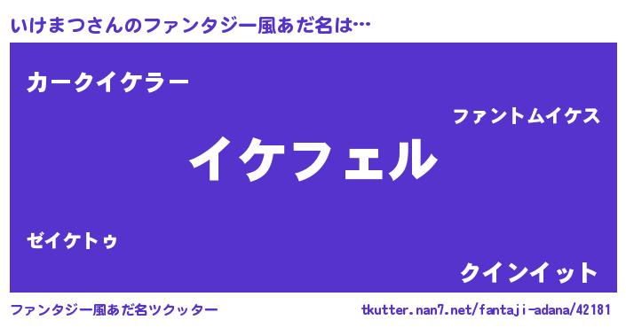 | 男性向けラノベタイトル風あだ名 | 『いけまつの憂鬱』 |