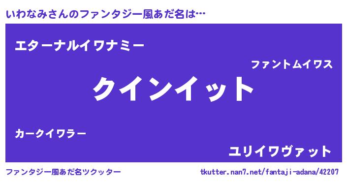 | 意味不明あだ名 | 『眠気覚ましガムいわなみ味』 |
