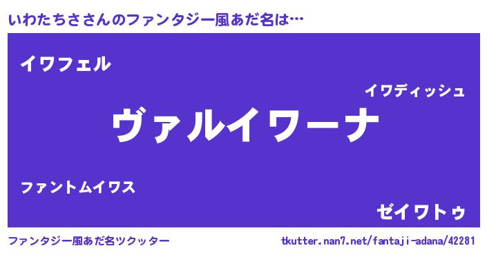 | 意味不明あだ名 | 『住所不定無職いわたちさ(10歳)』 |