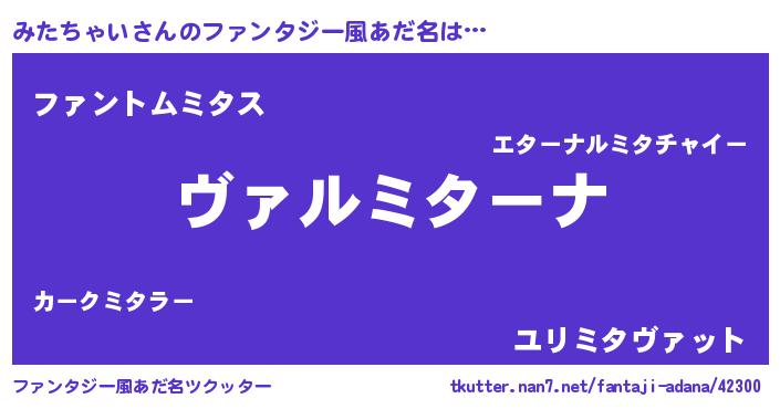 | ヒーロー風カッコイイあだ名 | 『仮面ミタダー』『天弓騎士ミタ』 |