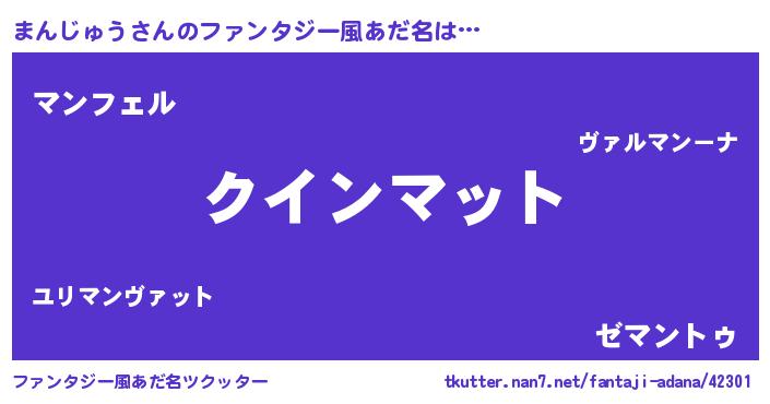 | 男性向けラノベタイトル風あだ名 | 『ノーゲーム・ノーマンジュウ』 |