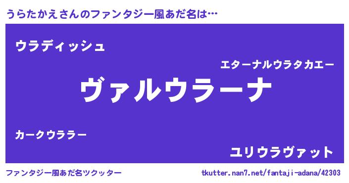 | 意味不明あだ名 | 『住所不定無職うらたかえ(13歳)』 |