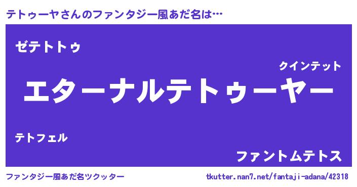 | 意味不明あだ名 | 『テトゥーヤフォーエバー』 |