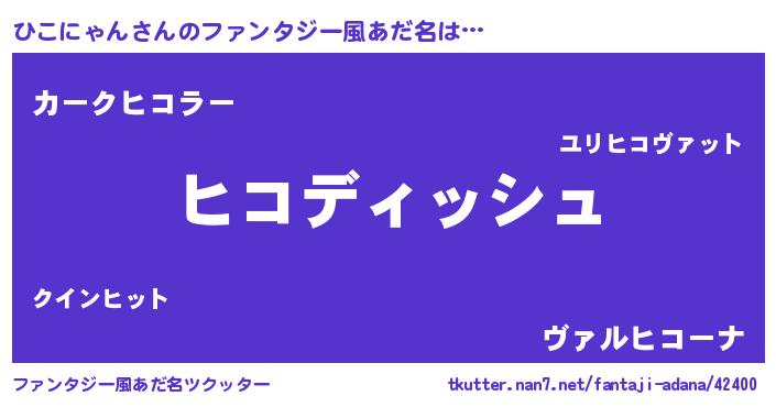 | 女子向けラノベタイトル風あだ名 | 『異世界で失敗しない100のひこにゃん』 |