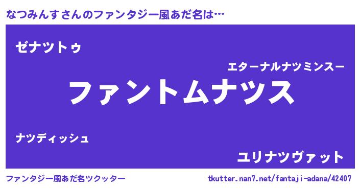 | 男性向けラノベタイトル風あだ名 | 『なつみんすに滅ぼされるだけの簡単なお仕事です』 |