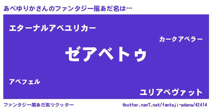 | 意味不明あだ名 | 『自称あべゆりか』『ペロリンあべゆりか』 |