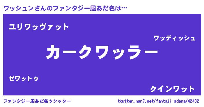 | 男性向けラノベタイトル風あだ名 | 『緋弾のワッシュン』 |