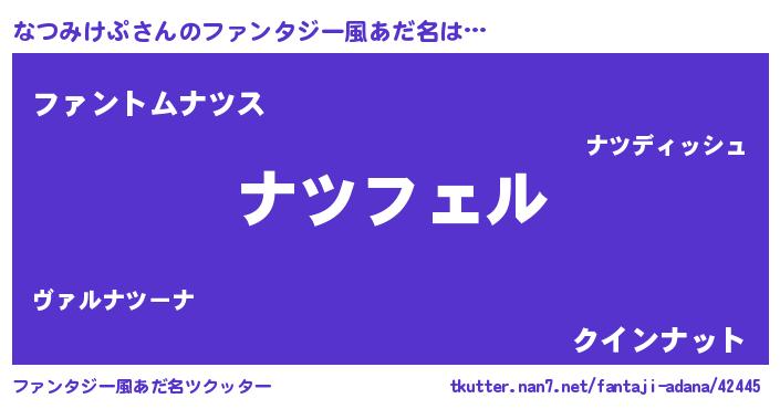 | ポケモン風あだ名 | 『ナツチュウ』『ヒナツミケプ』 |