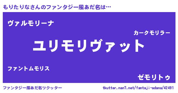 | 男性向けラノベタイトル風あだ名 | 『もりたりな~年齢イコール彼女いない歴の魔法使い~』 |