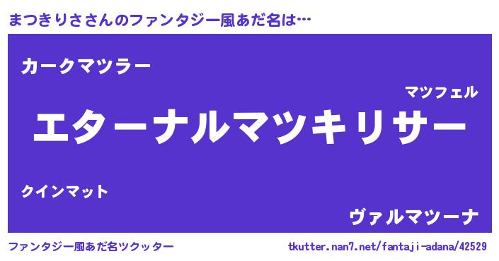 | 女子向けラノベタイトル風あだ名 | 『まつきりさの雑貨屋さん』 |
