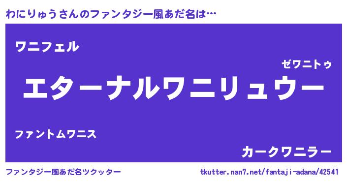 | 意味不明あだ名 | 『わにりゅうフォーエバー』 |