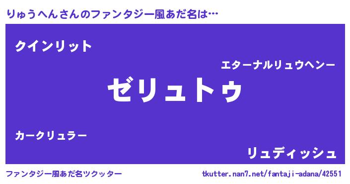 | 男性向けラノベタイトル風あだ名 | 『Re:りゅうへんから始める異世界生活』 |