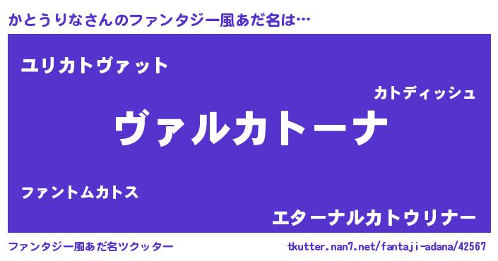 | 男性向けラノベタイトル風あだ名 | 『魔弾の王とかとうりな』 |