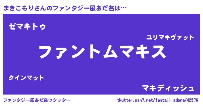 | ポケモン風あだ名 | 『ヒマキコモリ』『マキセウス』 |
