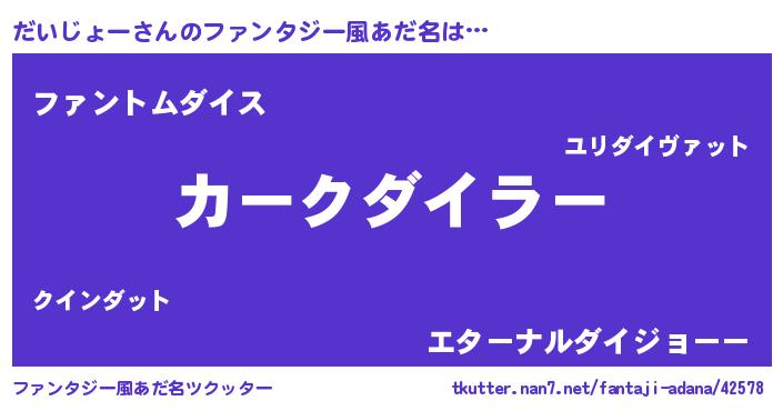 | ヒーロー風カッコイイあだ名 | 『黄金騎士ダイ』『正義の使者だいじょー』 |