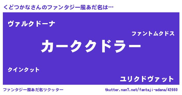 | ヒーロー風カッコイイあだ名 | 『仮面クドダー』『炎刃騎士クド』 |