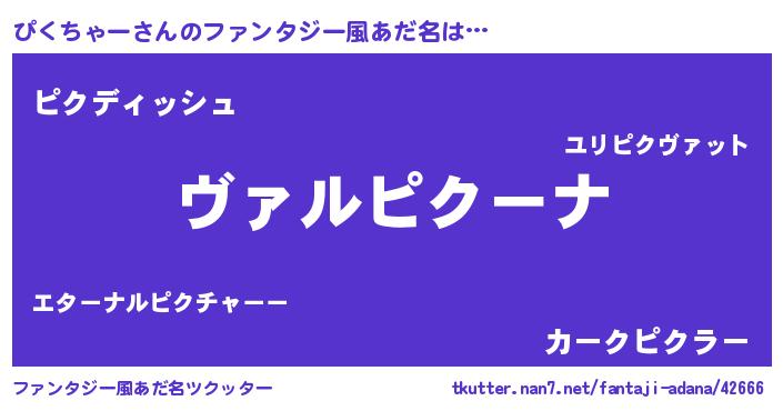 | 男性向けラノベタイトル風あだ名 | 『この素晴らしい世界にぴくちゃーを!』 |