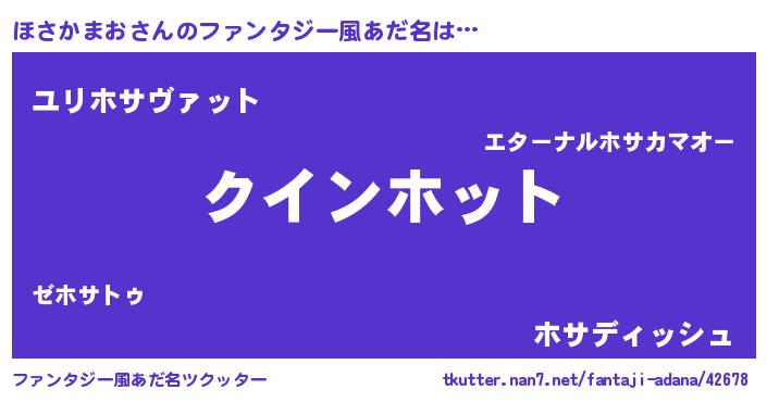 | 男性向けラノベタイトル風あだ名 | 『おまえをオタクにしてやるから、俺をほさかまおにしてくれ! 』 |