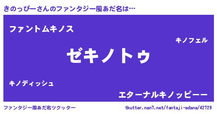 | ヒーロー風カッコイイあだ名 | 『超時空戦士キノッピー』『黄金騎士キノ』 |