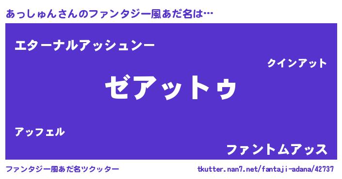 | 男性向けラノベタイトル風あだ名 | 『Re:あっしゅんから始める異世界生活』 |
