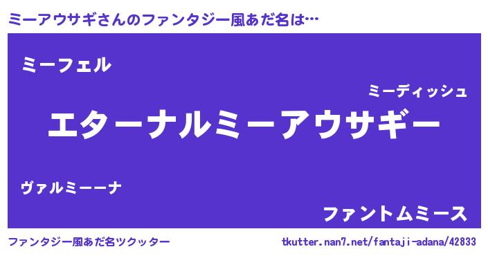 | ヒーロー風カッコイイあだ名 | 『ウルトラミーアウサギマン』 |