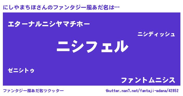 | ヒーロー風カッコイイあだ名 | 『スーパーニシヤマチホ』『銀牙騎士ニシ』 |