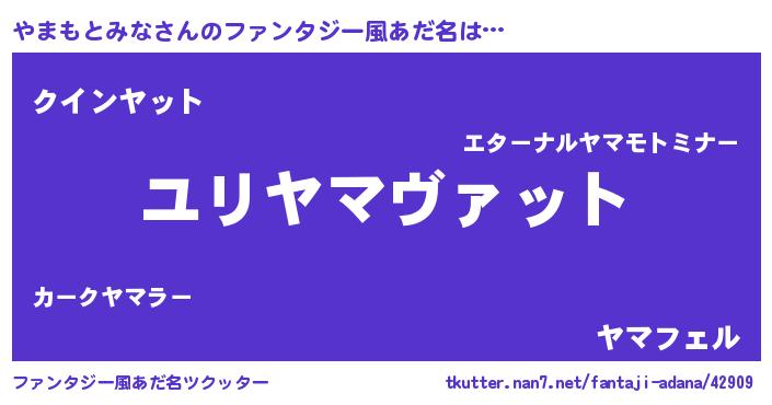 | 男性向けラノベタイトル風あだ名 | 『やまもとみな~年齢イコール彼女いない歴の魔法使い~』 |