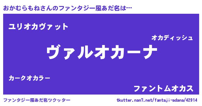 | 男性向けラノベタイトル風あだ名 | 『この素晴らしい世界におかむらもねを!』 |