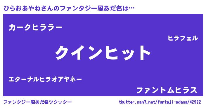 | ヒーロー風カッコイイあだ名 | 『天空の使者ひらおあやね』 |