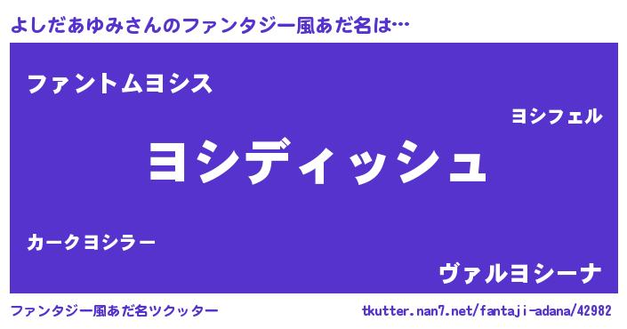 | ポケモン風あだ名 | 『ゼニヨシ』『ヒヨシダアユミ』 |