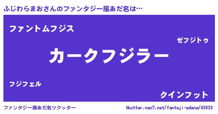 | ヒーロー風カッコイイあだ名 | 『幻影騎士フジ』『究極戦士フジワラマオ』 |