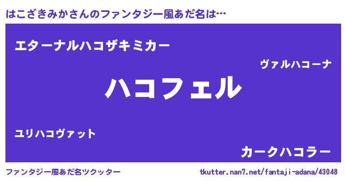 | 男性向けラノベタイトル風あだ名 | 『はこざきみかの憂鬱』 |