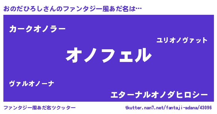 | 男性向けラノベタイトル風あだ名 | 『おのだひろしの憂鬱』 |
