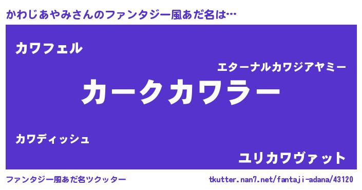 | 欧米人風あだ名 | 『かわじあやみ・ステッグマイヤー』 |
