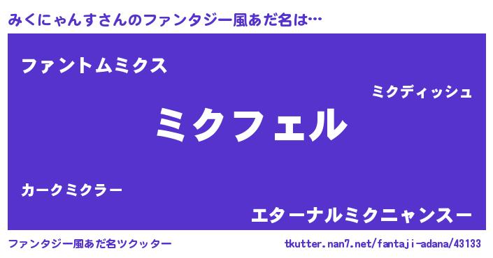 | ポケモン風あだ名 | 『ミクチュウ』『ヒミクニャンス』 |