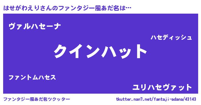 | ヘコむあだ名 | 『はせがわえり(笑)』『はせを』 |