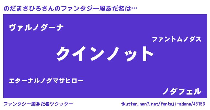 | 男性向けラノベタイトル風あだ名 | 『ノーゲーム・ノーノダマサヒロ』 |