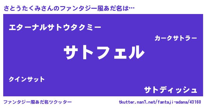 | ヒーロー風カッコイイあだ名 | 『スーパーサトウタクミ』『仮面サトダー』 |