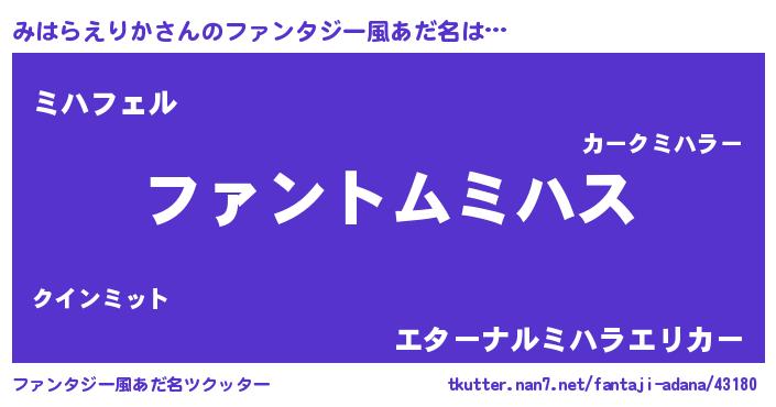 | ヒーロー風カッコイイあだ名 | 『炎刃騎士ミハ』『スーパーミハラエリカ』 |