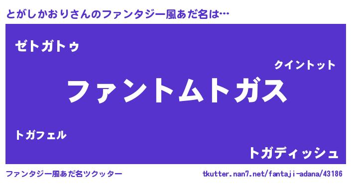 | ポケモン風あだ名 | 『ヒトガシカオリ』『トガセウス』 |