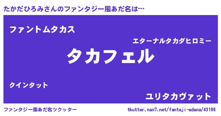 | ポケモン風あだ名 | 『タカチュウ』『ヒタカダヒロミ』 |