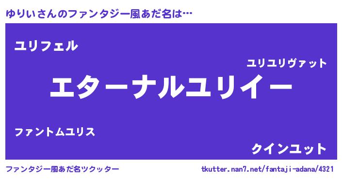 | 意味不明あだ名 | 『ゆりいフォーエバー』『ペロリンゆりい』 |