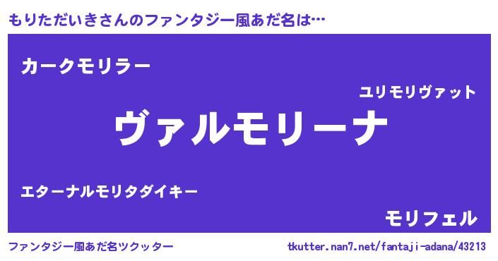 | ヒーロー風カッコイイあだ名 | 『仮面モリダー』『スーパーモリタダイキ』 |