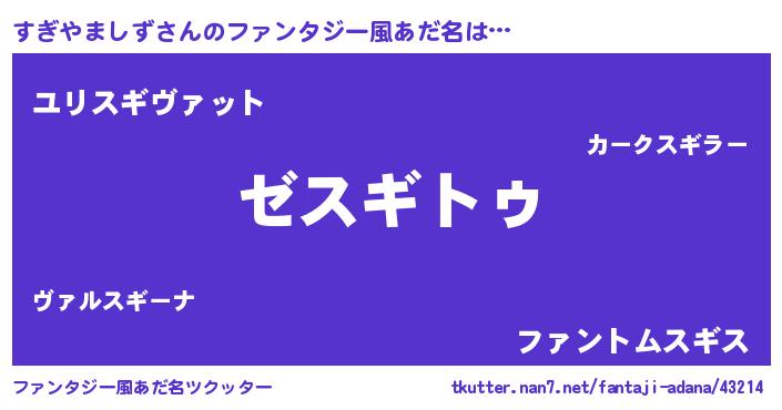 | 意味不明あだ名 | 『自称すぎやましず』 |