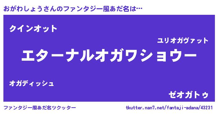 | 女子向けラノベタイトル風あだ名 | 『おがわしょう伯爵の花嫁』 |