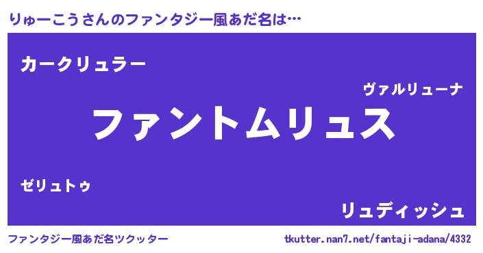 | ヘコむあだ名 | 『りゅ太郎』『りゅーこう(小並感)』 |