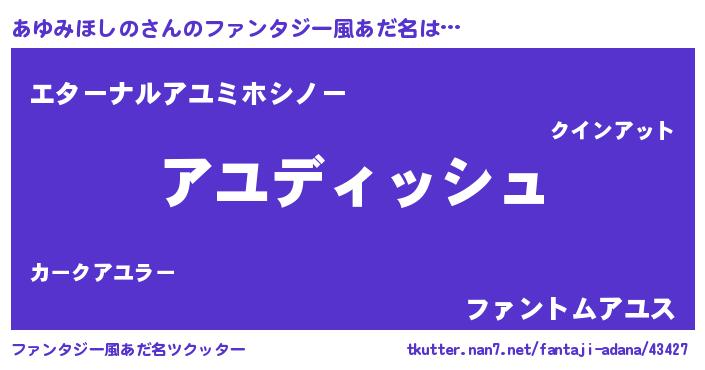 | ヒーロー風カッコイイあだ名 | 『ネオアユミホシノ』『炎刃騎士アユ』 |