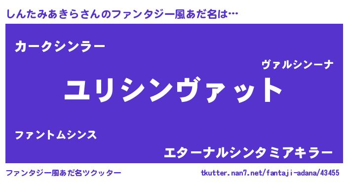 | 欧米人風あだ名 | 『トリンドルしんたみあきら』 |